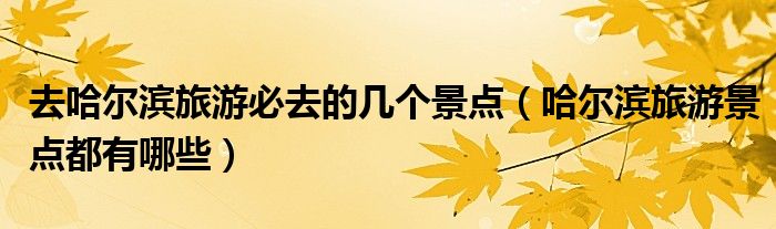 大家好,伊人來為大家解答以上問題。去哈爾濱旅游必去的幾個(gè)景點(diǎn),哈爾濱旅游景點(diǎn)都有哪些很多人還不知道,現(xiàn)在讓我們一起來看看吧!