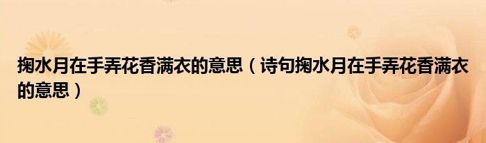 大家好,伊人來(lái)為大家解答以上問(wèn)題。掬水月在手弄花香滿衣的意思,詩(shī)句掬水月在手弄花香滿衣的意思很多人還不知道,現(xiàn)在讓我們一起來(lái)看看吧!