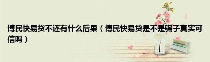 大家好,小育來(lái)為大家講解下。博民快易貸不還有什么后果,博民快易貸是不是騙子真實(shí)可信嗎很多人還不知道,現(xiàn)在讓我們一起來(lái)看看吧!