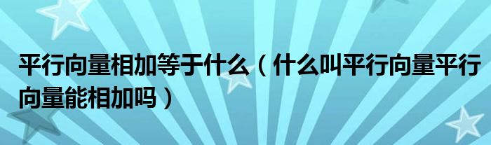 大家好,小育來為大家講解下。平行向量相加等于什么,什么叫平行向量平行向量能相加嗎很多人還不知道,現(xiàn)在讓我們一起來看看吧!
