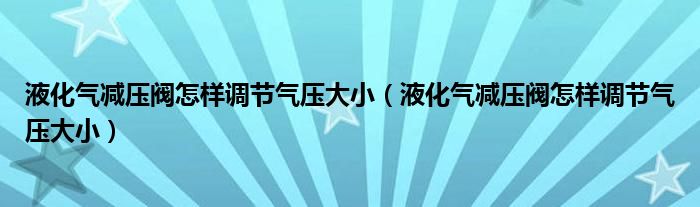大家好,小育來為大家講解下。液化氣減壓閥怎樣調(diào)節(jié)氣壓大小,液化氣減壓閥怎樣調(diào)節(jié)氣壓大小很多人還不知道,現(xiàn)在讓我們一起來看看吧!