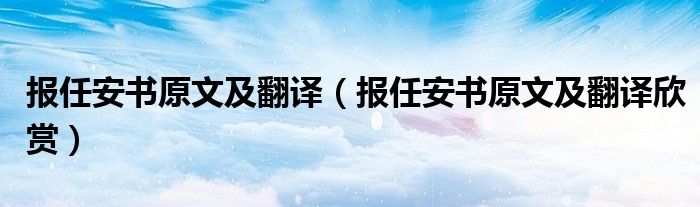 大家好,伊人來為大家解答以上問題。報(bào)任安書原文及翻譯,報(bào)任安書原文及翻譯欣賞很多人還不知道,現(xiàn)在讓我們一起來看看吧!