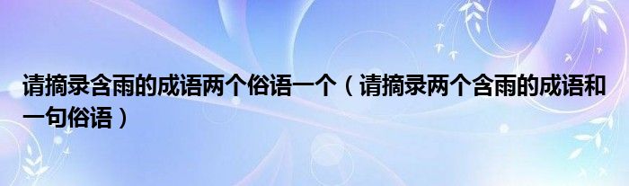 大家好,小育來為大家講解下。請摘錄含雨的成語兩個俗語一個,請摘錄兩個含雨的成語和一句俗語很多人還不知道,現(xiàn)在讓我們一起來看看吧!