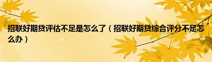 大家好,小育來為大家講解下。招聯(lián)好期貸評估不足是怎么了,招聯(lián)好期貸綜合評分不足怎么辦很多人還不知道,現(xiàn)在讓我們一起來看看吧!