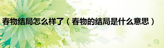 大家好,小育來(lái)為大家講解下。春物結(jié)局怎么樣了,春物的結(jié)局是什么意思很多人還不知道,現(xiàn)在讓我們一起來(lái)看看吧!