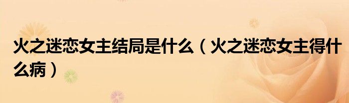 大家好,小育來為大家講解下?;鹬詰倥鹘Y(jié)局是什么,火之迷戀女主得什么病很多人還不知道,現(xiàn)在讓我們一起來看看吧!