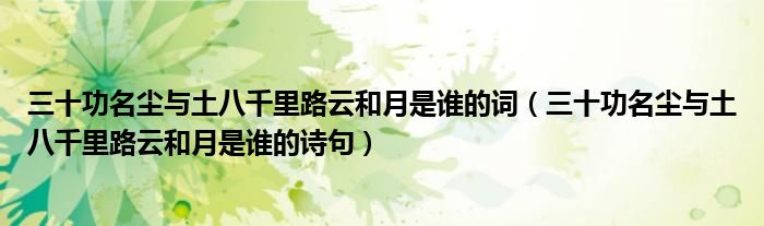 大家好,小育來為大家講解下。三十功名塵與土八千里路云和月是誰的詞,三十功名塵與土八千里路云和月是誰的詩句很多人還不知道,現(xiàn)在讓我們一起來看看吧!