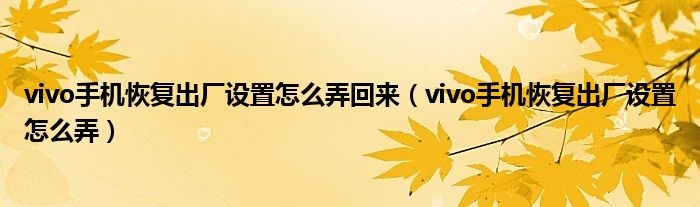 大家好,小育來為大家講解下。vivo手機恢復出廠設置怎么弄回來,vivo手機恢復出廠設置怎么弄很多人還不知道,現(xiàn)在讓我們一起來看看吧!