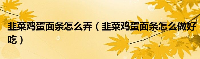 大家好,小育來為大家講解下。韭菜雞蛋面條怎么弄,韭菜雞蛋面條怎么做好吃很多人還不知道,現(xiàn)在讓我們一起來看看吧!