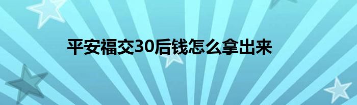 大家好,小育來(lái)為大家講解下。平安福交30后錢(qián)怎么拿出來(lái)很多人還不知道,現(xiàn)在讓我們一起來(lái)看看吧!