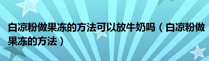 大家好,小育來為大家講解下。白涼粉做果凍的方法可以放牛奶嗎,白涼粉做果凍的方法很多人還不知道,現(xiàn)在讓我們一起來看看吧!