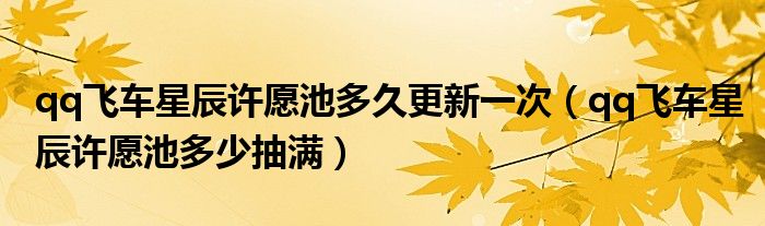 大家好,小育來為大家講解下。qq飛車星辰許愿池多久更新一次,qq飛車星辰許愿池多少抽滿很多人還不知道,現(xiàn)在讓我們一起來看看吧!
