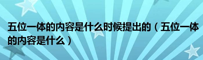 大家好,小育來(lái)為大家講解下。五位一體的內(nèi)容是什么時(shí)候提出的,五位一體的內(nèi)容是什么很多人還不知道,現(xiàn)在讓我們一起來(lái)看看吧!