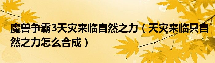 大家好,小育來為大家講解下。魔獸爭霸3天災(zāi)來臨自然之力,天災(zāi)來臨只自然之力怎么合成很多人還不知道,現(xiàn)在讓我們一起來看看吧!