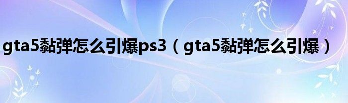 大家好,小育來為大家講解下。gta5黏彈怎么引爆ps3,gta5黏彈怎么引爆很多人還不知道,現(xiàn)在讓我們一起來看看吧!