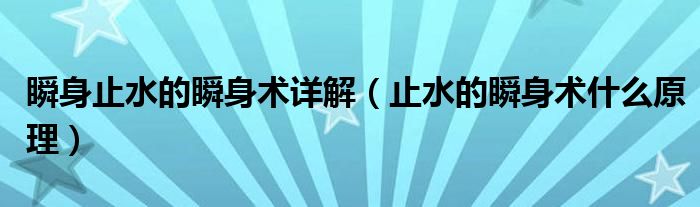 大家好,小育來為大家講解下。瞬身止水的瞬身術詳解,止水的瞬身術什么原理很多人還不知道,現(xiàn)在讓我們一起來看看吧!