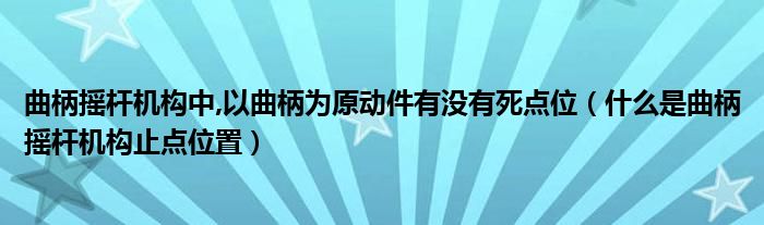 大家好,小育來(lái)為大家講解下。曲柄搖桿機(jī)構(gòu)中,以曲柄為原動(dòng)件有沒(méi)有死點(diǎn)位,什么是曲柄搖桿機(jī)構(gòu)止點(diǎn)位置很多人還不知道,現(xiàn)在讓我們一起來(lái)看看吧!