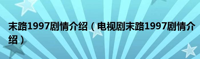 大家好,伊人來為大家解答以上問題。末路1997劇情介紹,電視劇末路1997劇情介紹很多人還不知道,現(xiàn)在讓我們一起來看看吧!