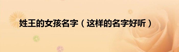 大家好,伊人來為大家解答以上問題。姓王的女孩名字,這樣的名字好聽很多人還不知道,現(xiàn)在讓我們一起來看看吧!