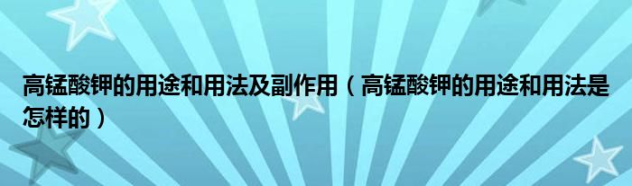 大家好,小育來(lái)為大家講解下。高錳酸鉀的用途和用法及副作用,高錳酸鉀的用途和用法是怎樣的很多人還不知道,現(xiàn)在讓我們一起來(lái)看看吧!