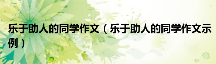 大家好,伊人來為大家解答以上問題。樂于助人的同學(xué)作文,樂于助人的同學(xué)作文示例很多人還不知道,現(xiàn)在讓我們一起來看看吧!