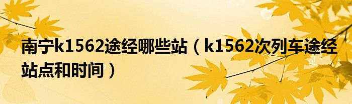 大家好,小育來為大家講解下。南寧k1562途經(jīng)哪些站,k1562次列車途經(jīng)站點(diǎn)和時間很多人還不知道,現(xiàn)在讓我們一起來看看吧!