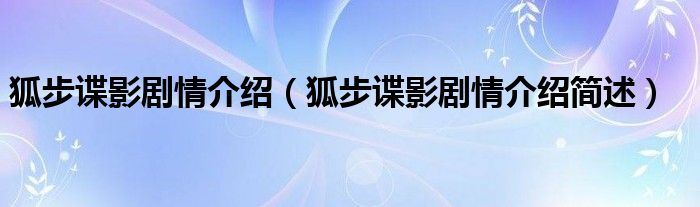 大家好,伊人來(lái)為大家解答以上問(wèn)題。狐步諜影劇情介紹,狐步諜影劇情介紹簡(jiǎn)述很多人還不知道,現(xiàn)在讓我們一起來(lái)看看吧!