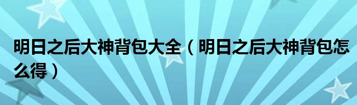 大家好,小育來為大家講解下。明日之后大神背包大全,明日之后大神背包怎么得很多人還不知道,現(xiàn)在讓我們一起來看看吧!