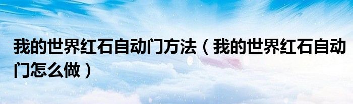 大家好,小育來為大家講解下。我的世界紅石自動門方法,我的世界紅石自動門怎么做很多人還不知道,現(xiàn)在讓我們一起來看看吧!