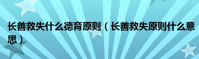 大家好,小育來為大家講解下。長善救失什么德育原則,長善救失原則什么意思很多人還不知道,現(xiàn)在讓我們一起來看看吧!