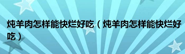 大家好,小育來(lái)為大家講解下。燉羊肉怎樣能快爛好吃,燉羊肉怎樣能快爛好吃很多人還不知道,現(xiàn)在讓我們一起來(lái)看看吧!