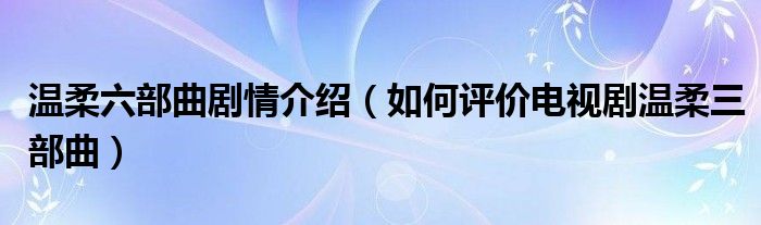 大家好,小育來(lái)為大家講解下。溫柔六部曲劇情介紹,如何評(píng)價(jià)電視劇溫柔三部曲很多人還不知道,現(xiàn)在讓我們一起來(lái)看看吧!