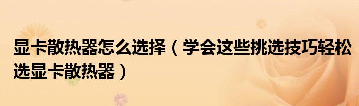 大家好,伊人來為大家解答以上問題。顯卡散熱器怎么選擇,學(xué)會這些挑選技巧輕松選顯卡散熱器很多人還不知道,現(xiàn)在讓我們一起來看看吧!