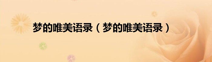 大家好,小育來(lái)為大家講解下。夢(mèng)的唯美語(yǔ)錄,夢(mèng)的唯美語(yǔ)錄很多人還不知道,現(xiàn)在讓我們一起來(lái)看看吧!