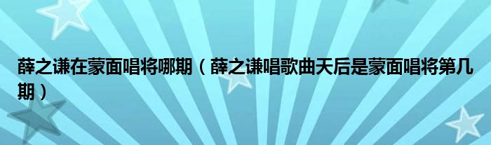 大家好,小育來為大家講解下。薛之謙在蒙面唱將哪期,薛之謙唱歌曲天后是蒙面唱將第幾期很多人還不知道,現(xiàn)在讓我們一起來看看吧!