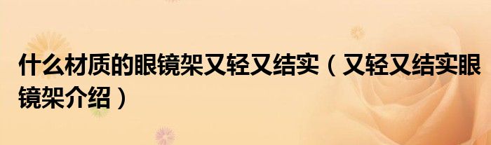 大家好,伊人來為大家解答以上問題。什么材質(zhì)的眼鏡架又輕又結(jié)實,又輕又結(jié)實眼鏡架介紹很多人還不知道,現(xiàn)在讓我們一起來看看吧!
