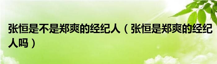 大家好,小育來(lái)為大家講解下。張恒是不是鄭爽的經(jīng)紀(jì)人,張恒是鄭爽的經(jīng)紀(jì)人嗎很多人還不知道,現(xiàn)在讓我們一起來(lái)看看吧!