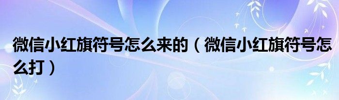 大家好,小育來(lái)為大家講解下。微信小紅旗符號(hào)怎么來(lái)的,微信小紅旗符號(hào)怎么打很多人還不知道,現(xiàn)在讓我們一起來(lái)看看吧!