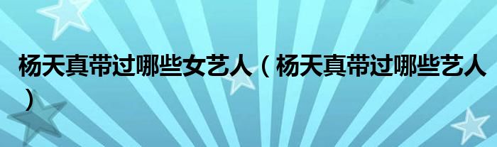 大家好,小育來為大家講解下。楊天真帶過哪些女藝人,楊天真帶過哪些藝人很多人還不知道,現(xiàn)在讓我們一起來看看吧!