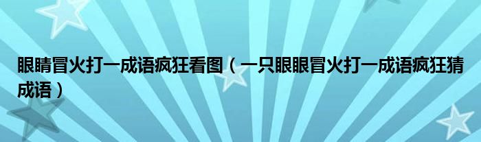 大家好,小育來(lái)為大家講解下。眼睛冒火打一成語(yǔ)瘋狂看圖,一只眼眼冒火打一成語(yǔ)瘋狂猜成語(yǔ)很多人還不知道,現(xiàn)在讓我們一起來(lái)看看吧!