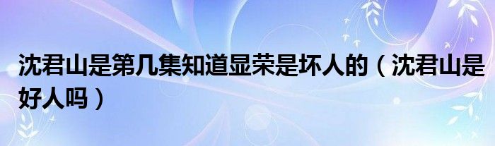大家好,小育來為大家講解下。沈君山是第幾集知道顯榮是壞人的,沈君山是好人嗎很多人還不知道,現(xiàn)在讓我們一起來看看吧!