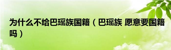 大家好,小育來(lái)為大家講解下。為什么不給巴瑤族國(guó)籍,巴瑤族 愿意要國(guó)籍嗎很多人還不知道,現(xiàn)在讓我們一起來(lái)看看吧!