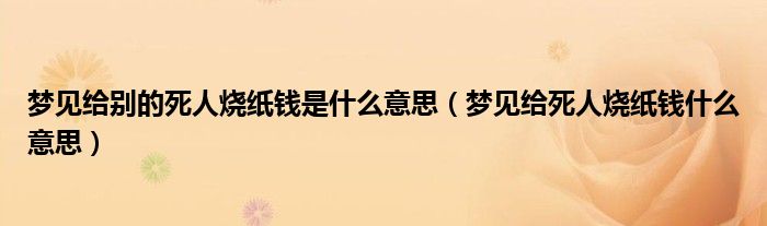 大家好,小育來為大家講解下。夢(mèng)見給別的死人燒紙錢是什么意思,夢(mèng)見給死人燒紙錢什么意思很多人還不知道,現(xiàn)在讓我們一起來看看吧!