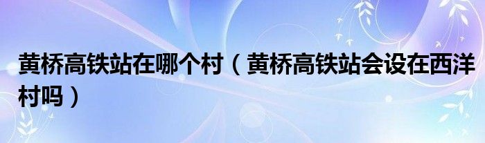 大家好,小育來為大家講解下。黃橋高鐵站在哪個村,黃橋高鐵站會設在西洋村嗎很多人還不知道,現在讓我們一起來看看吧!