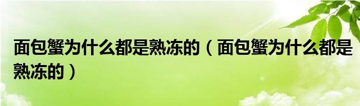 大家好,小育來為大家講解下。面包蟹為什么都是熟凍的,面包蟹為什么都是熟凍的很多人還不知道,現(xiàn)在讓我們一起來看看吧!