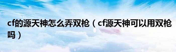 大家好,小育來為大家講解下。cf的源天神怎么弄雙槍,cf源天神可以用雙槍嗎很多人還不知道,現(xiàn)在讓我們一起來看看吧!