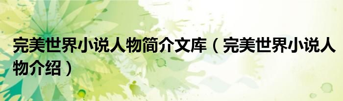 大家好,小育來為大家講解下。完美世界小說人物簡介文庫,完美世界小說人物介紹很多人還不知道,現(xiàn)在讓我們一起來看看吧!