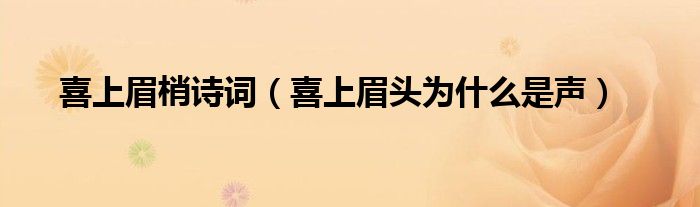 大家好,小育來為大家講解下。喜上眉梢詩詞,喜上眉頭為什么是聲很多人還不知道,現(xiàn)在讓我們一起來看看吧!