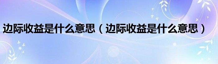 大家好,小育來為大家講解下。邊際收益是什么意思,邊際收益是什么意思很多人還不知道,現(xiàn)在讓我們一起來看看吧!