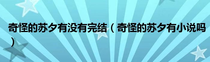 大家好,小育來(lái)為大家講解下。奇怪的蘇夕有沒有完結(jié),奇怪的蘇夕有小說(shuō)嗎很多人還不知道,現(xiàn)在讓我們一起來(lái)看看吧!